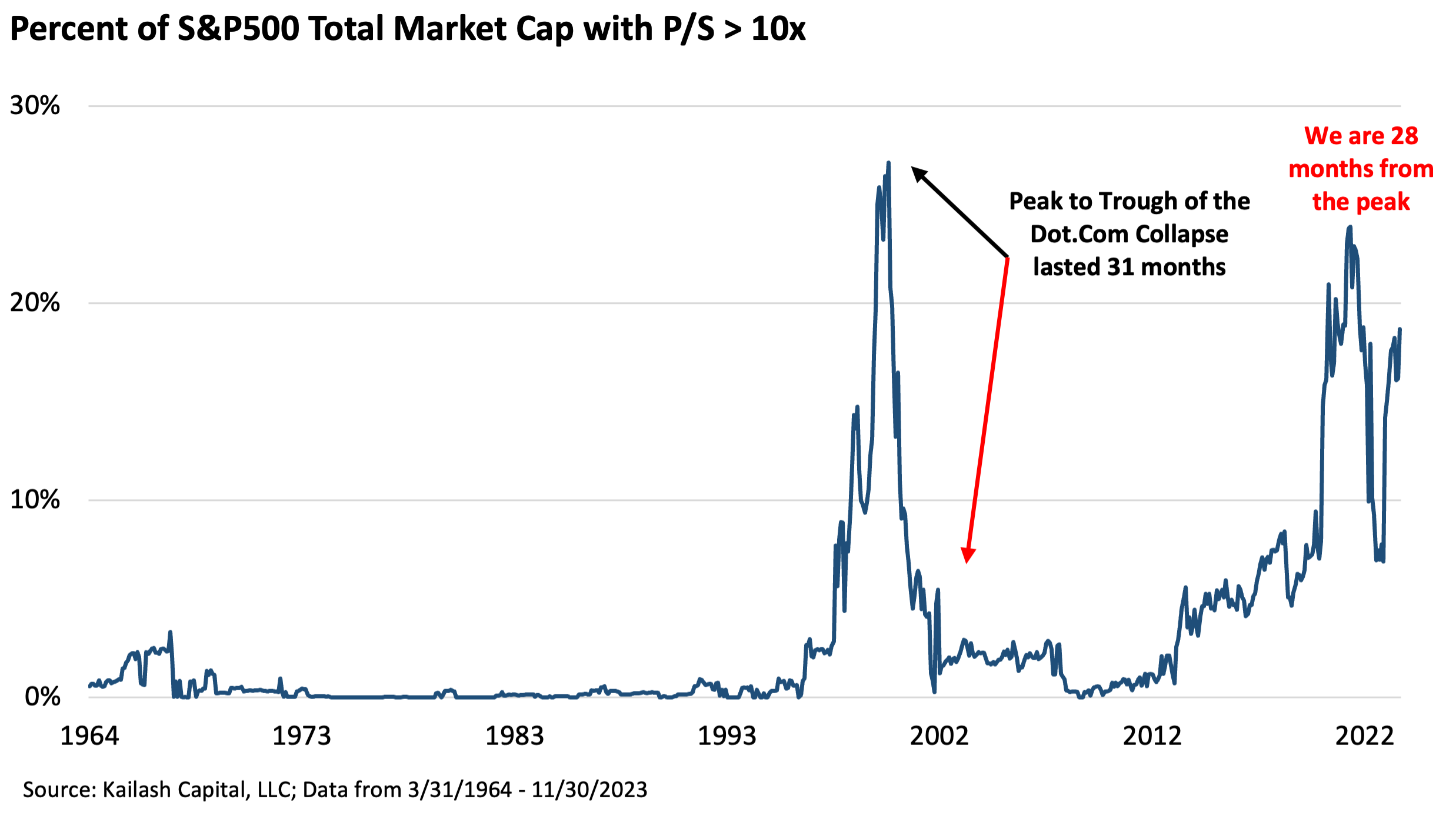 History rhymes. Doesn’t repeat. Valuation doesn’t matter until it is all that matters. Stocks valued at 10x price to sales (P/S) are difficult to justify. The CEO of Sun Microsystems made the merciless math of 10x P/S easy to understand after the dot.com bubble imploded. We have reprinted his quote here again for the sake of convenience.