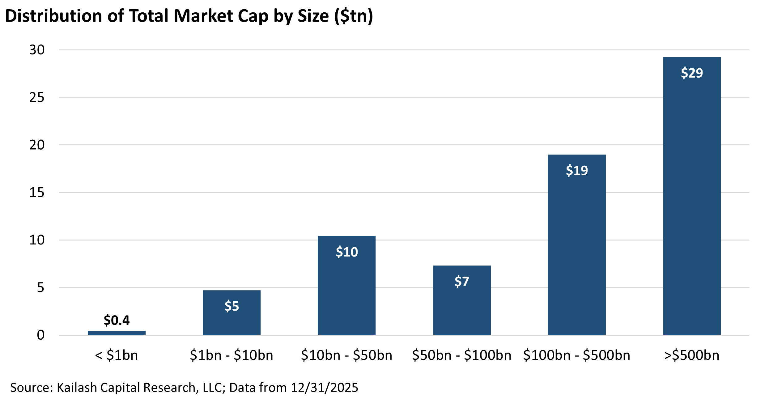 - Companies >$500B represent ~$29T in market value.