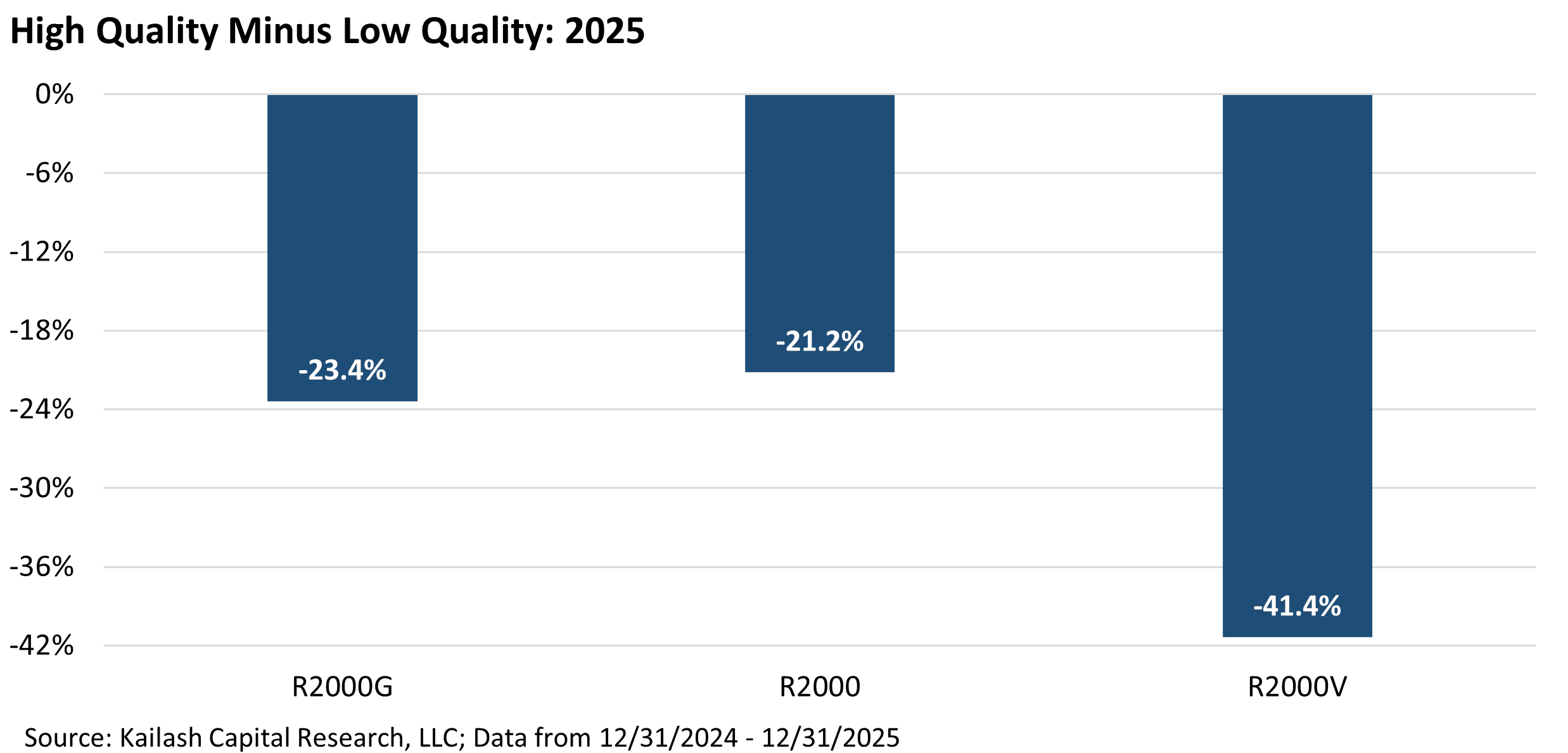 - High-quality stocks trailed low-quality names dramatically in 2025.