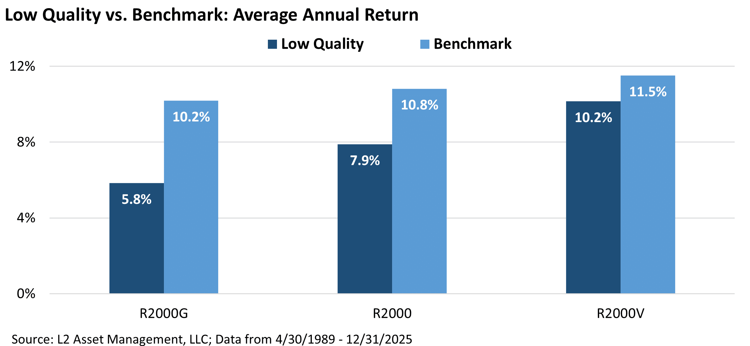 Chart 12: Long-Term Returns – Low Quality LOSES to the Benchmark Over the Long Haul