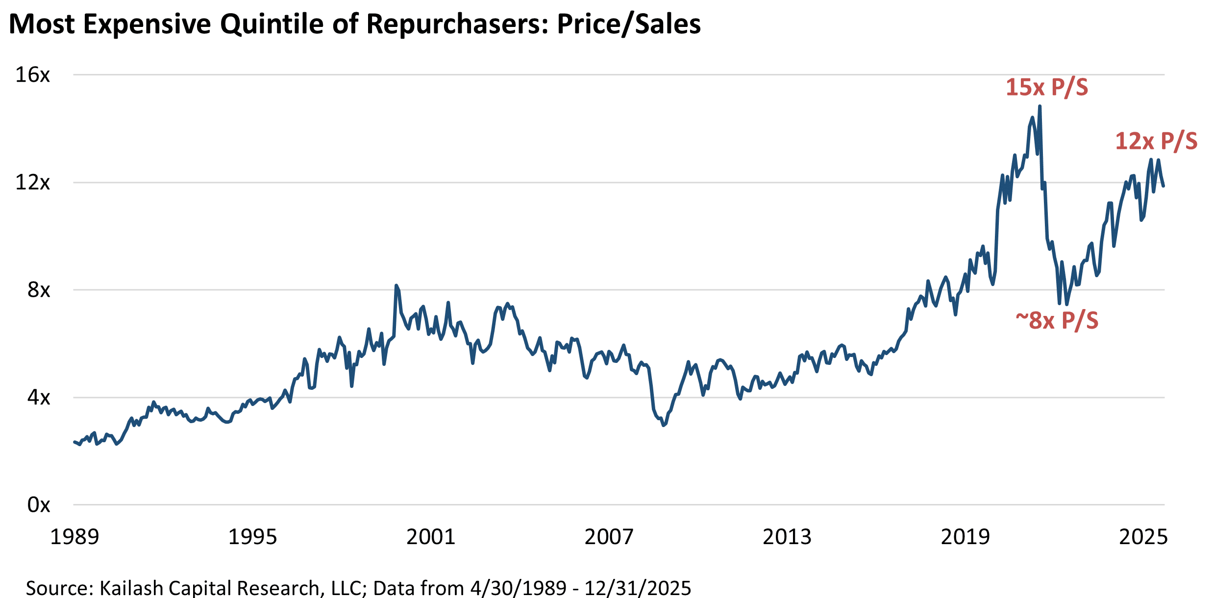 One of KCR’s more recent notes highlighted the capital misallocation underway via buybacks at high valuations. We have updated the two most important charts from that piece, and the picture has only grown darker.