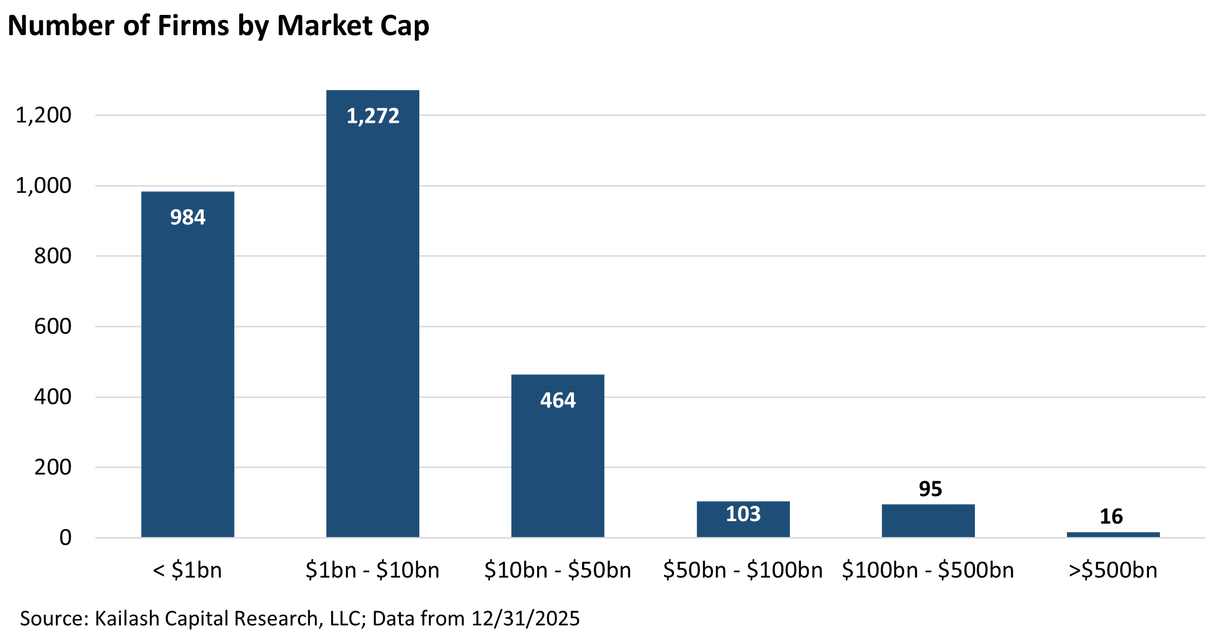 - Only 214 firms exceed $50B.
