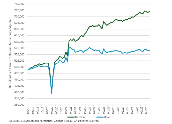 Student loan payments resumed and jobs growth keeps getting reported as good then adjusted to awful. We suspect there has been nearly none all year and that this will become clear once all the revisions are in. This is making people cautious, even fearful. Take out data-center spending and a lot of the US is likely in its own “subset recession.” As the tariff effects on price bite (and they will) much of this will express as dropping demand. The consumer is showing signs of real exhaustion. Real personal consumption expenditure has been flat since December (16.408 in July vs 16.358 in Dec).
