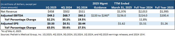 Pediatrix Medical Group, Inc. — EPS and EBITDA Summary Data