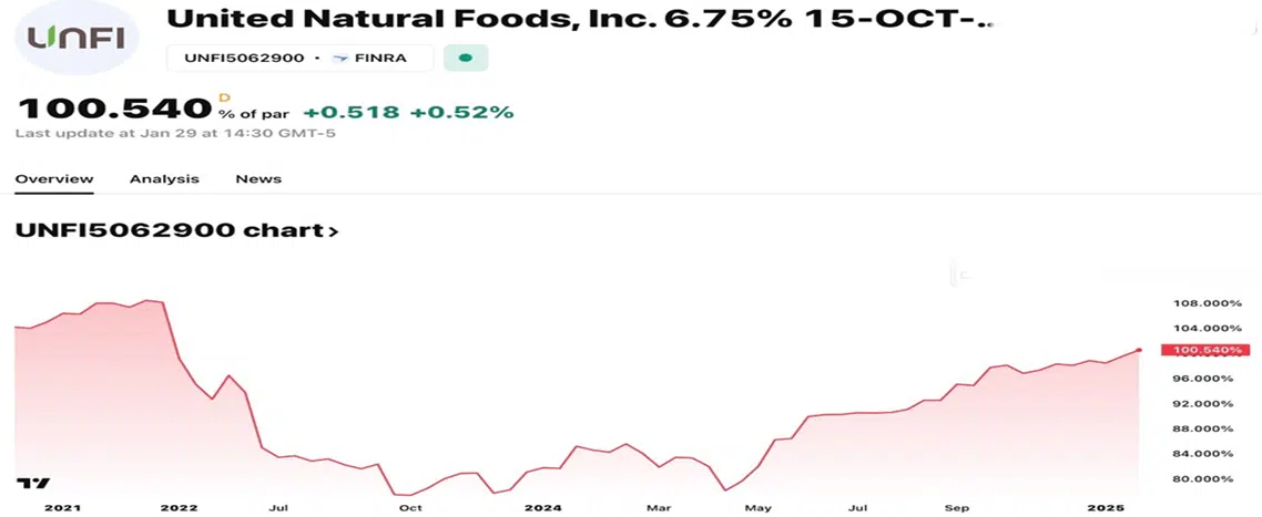 United Natural Foods, Inc. – Price as a Percentage of Par for 6.75% Bond Due October 15, 2028