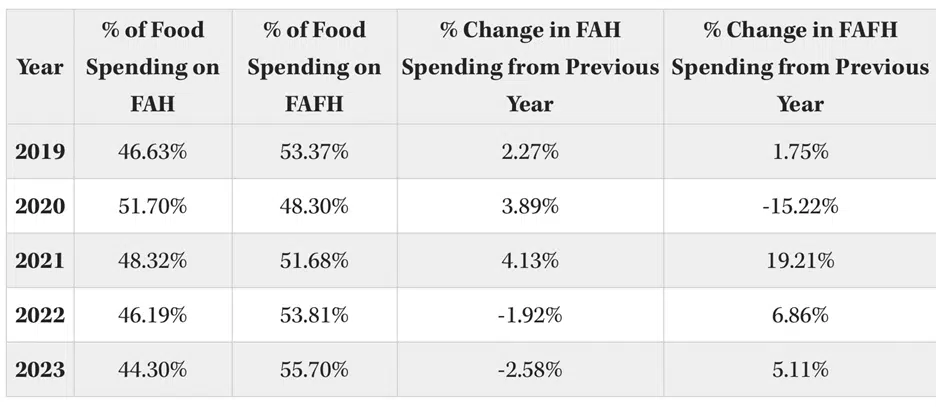 How Much are Americans Spending on Food at Home Versus Food Away from Home?